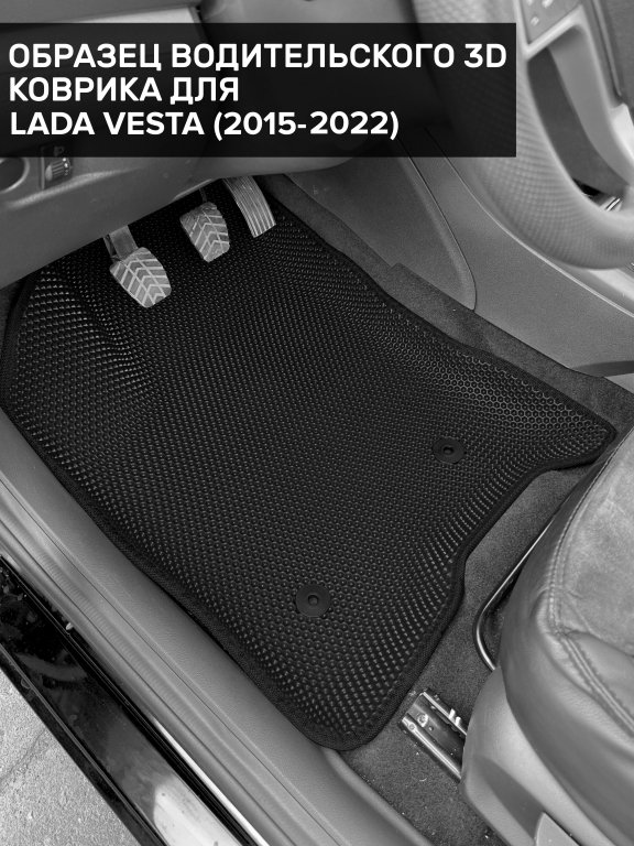 Автомобильные 3д коврики для Lada Vesta седан, универсал (2015-2022) в салон авто и багажник сделаны из инновационного полимерного материала EVA, изысканная структура в виде ячеек не дает воде, пыли и снегу разлетаться по салону машины и багажнику. 3д коврики зафиксированы на полу определенными клипсами, соответствующими Lada Vesta седан, универсал (2015-2022), и не двигаются в процессе езды.